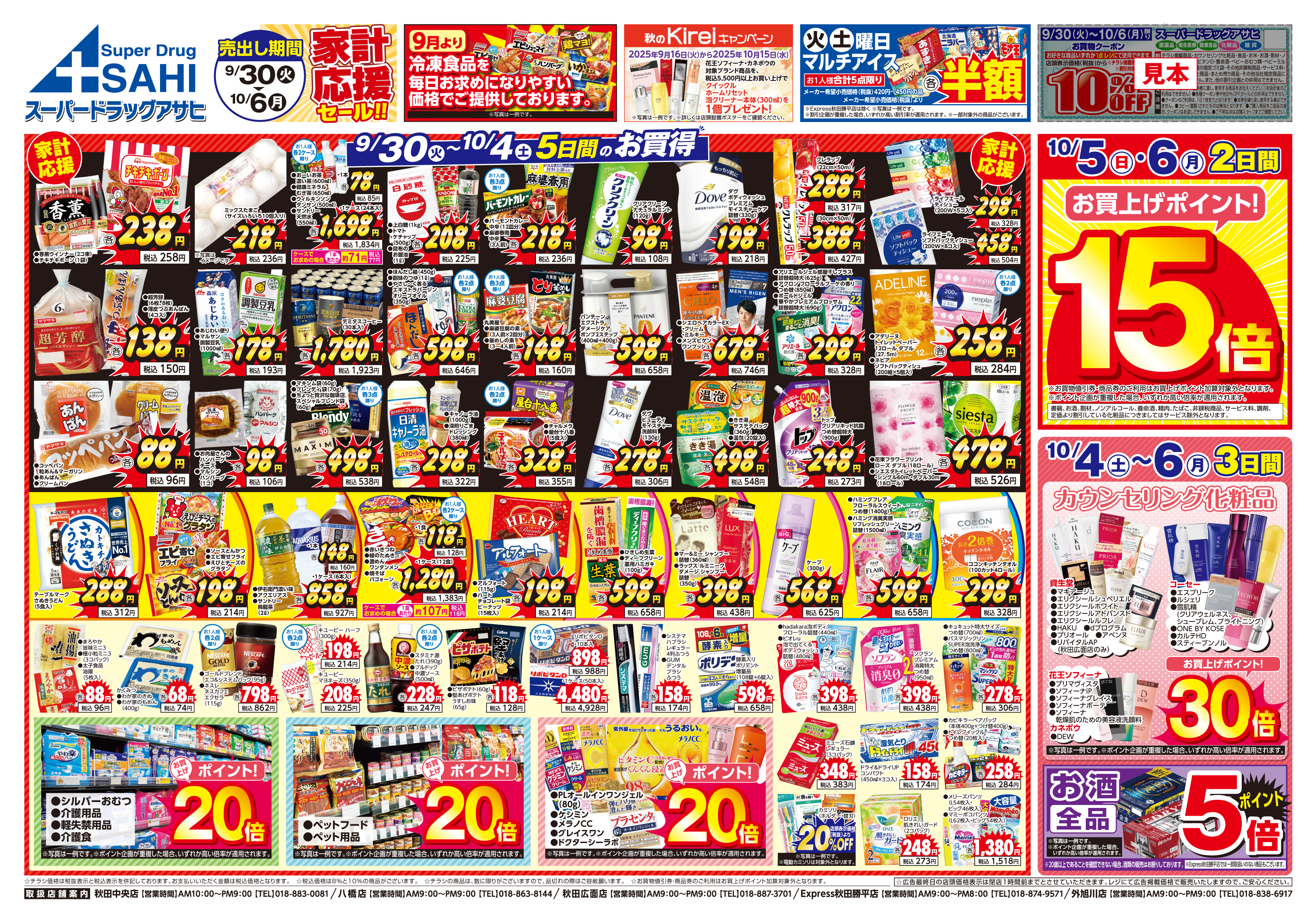 秋田中央店 八橋店 広面店 秋田勝平店 外旭川店
