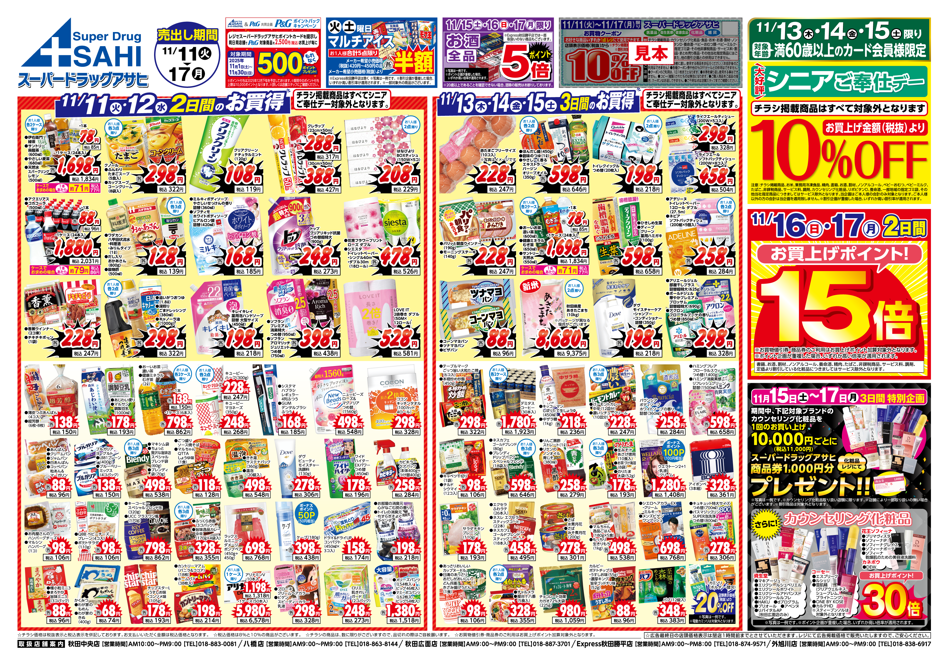 秋田中央店 八橋店 広面店 秋田勝平店 外旭川店