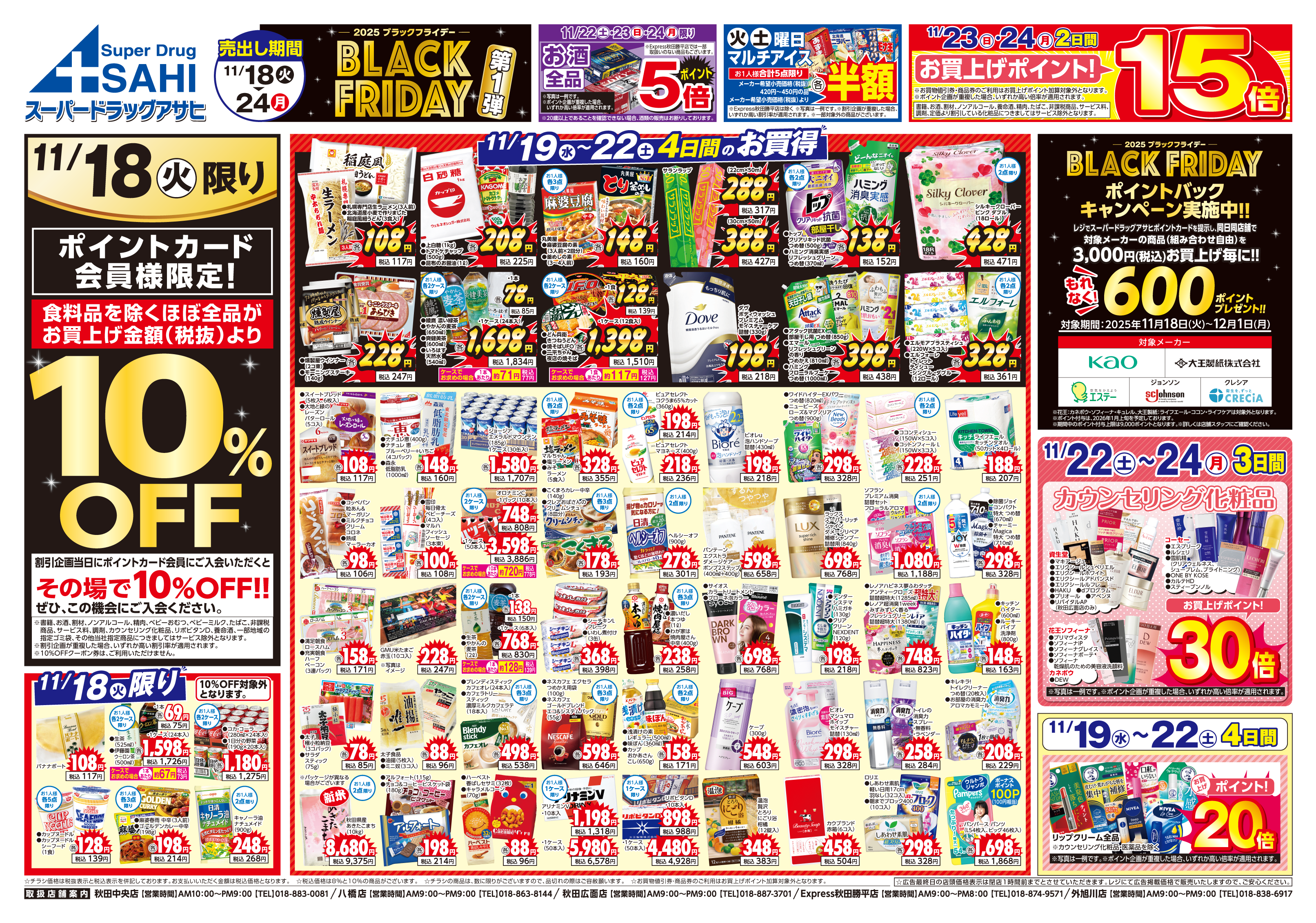 秋田中央店 八橋店 広面店 秋田勝平店 外旭川店
