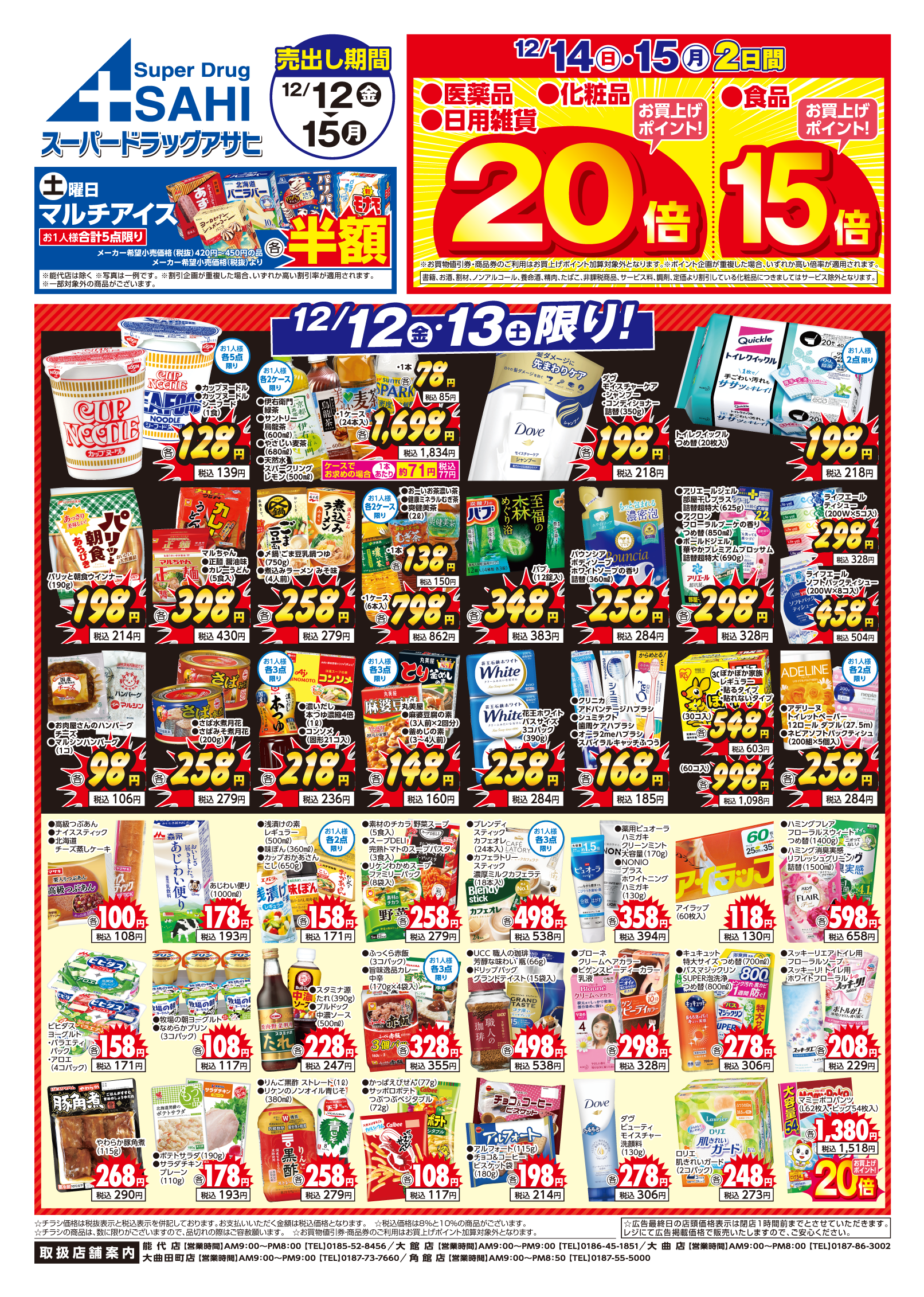 能代店 大館店 大曲店 大曲田町店 角館店