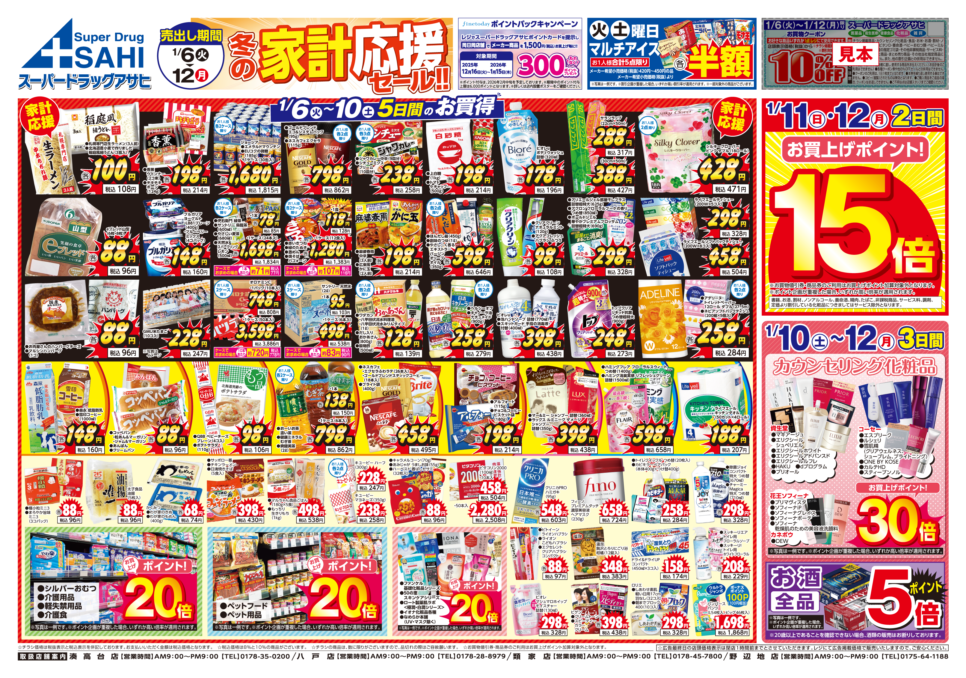 湊高台店 八戸店 類家店 野辺地店