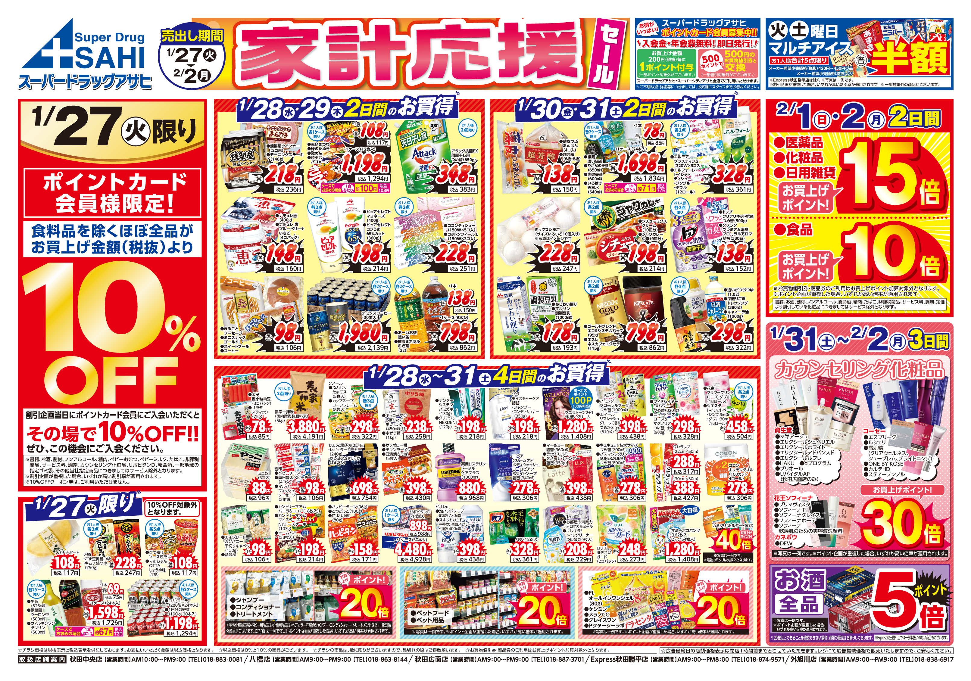 秋田中央店 八橋店 広面店 秋田勝平店 外旭川店