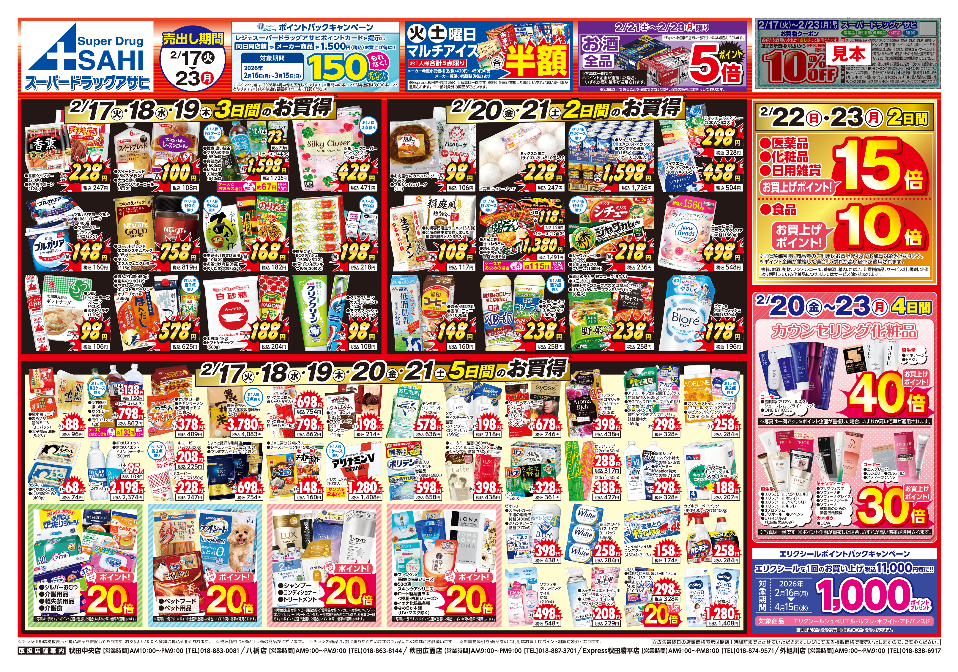秋田中央店 八橋店 広面店 秋田勝平店 外旭川店