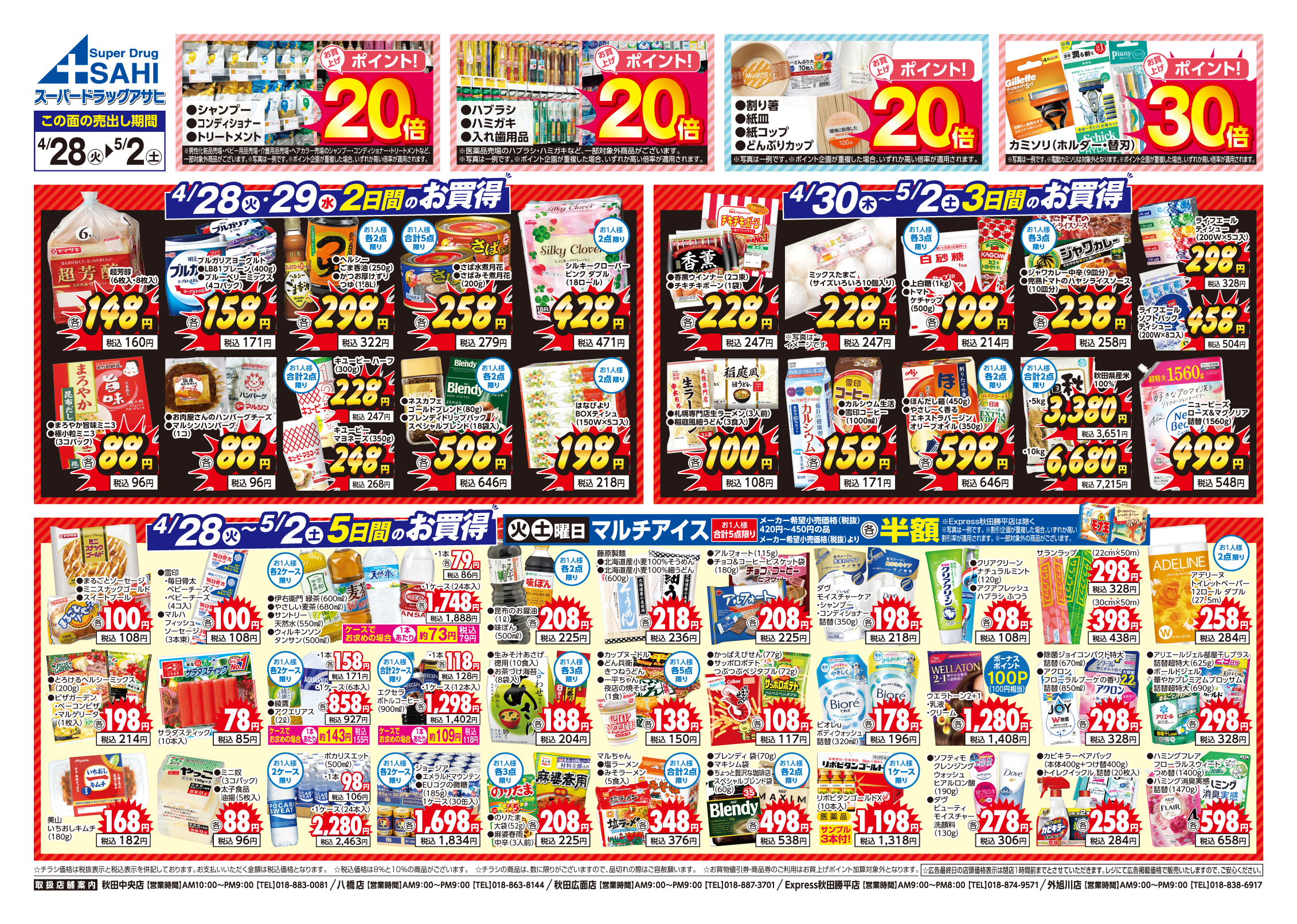 秋田中央店 八橋店 広面店 秋田勝平店 外旭川店
